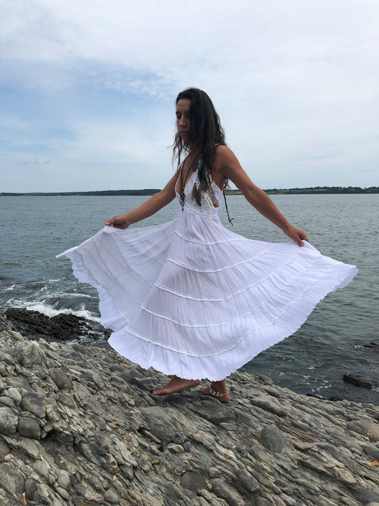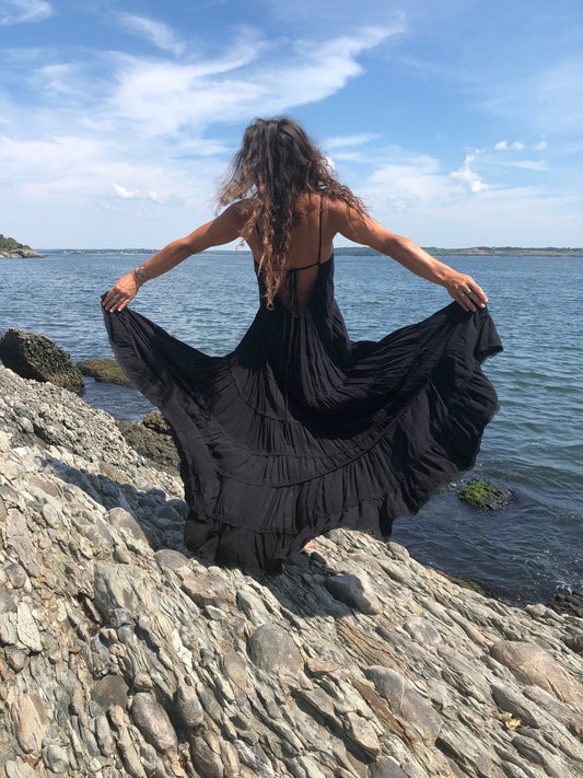 Embrace boho elegance with the Selene Maxi Ruffle Dress, featuring a